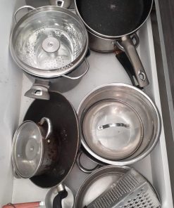 2 ollas grandes (26 cm aprox ) y 3 medianas (20 cm aprox)