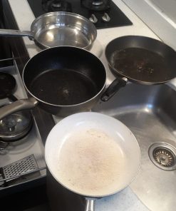 3 sartenes medianos (20 cm aprox) y 1 grande (25 cm aprox)