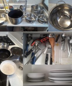 2 ollas grandes (26 cm aprox ) y 3 medianas (20 cm aprox)