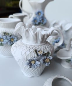 Medidas: jarro 14×15 cm, plato corazón 6 cm aprox
