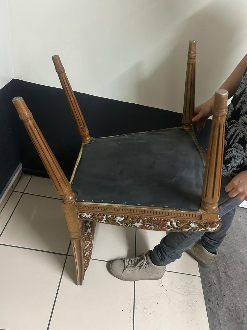 Silla antigua restaurada flores