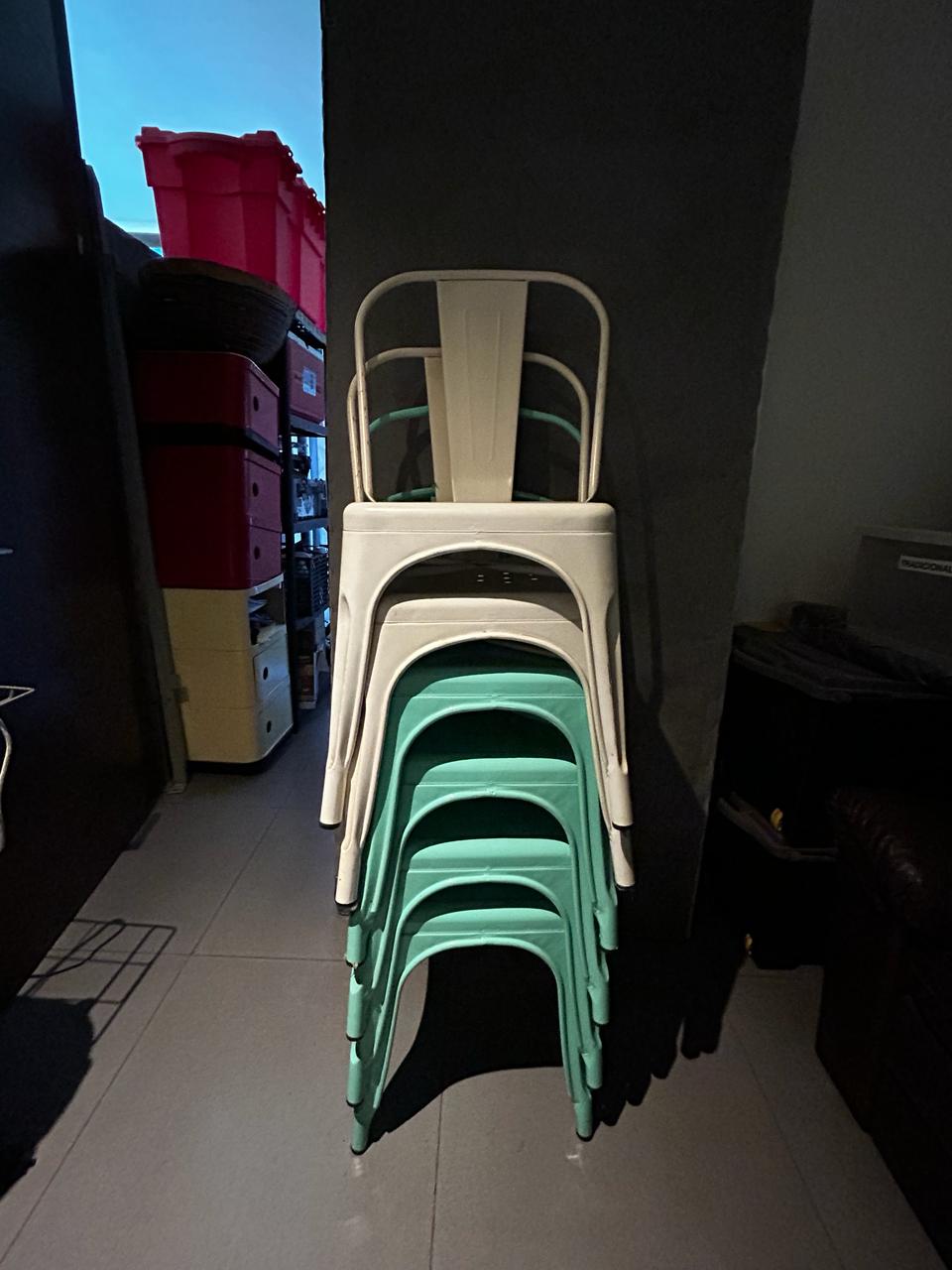 Etiquetas: 6 unidades, buen estado, metálica, silla, variedad de colores