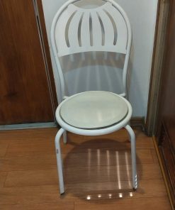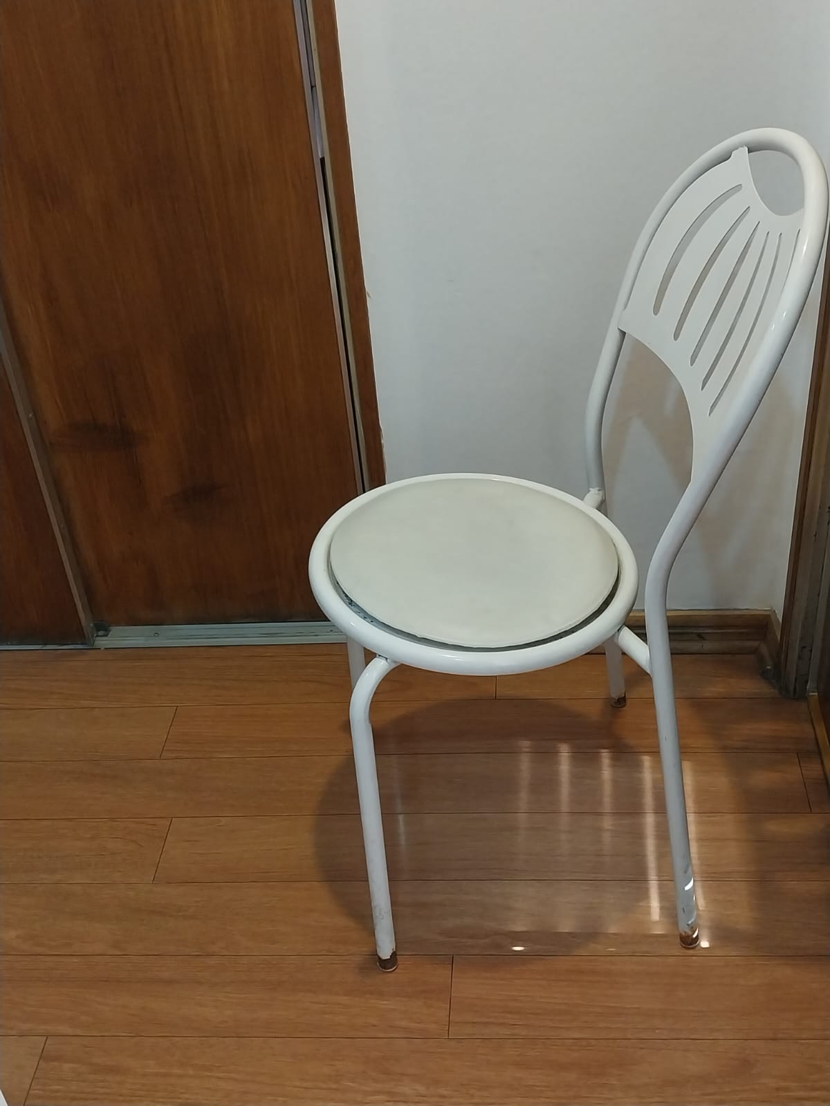 Etiquetas: silla baja blanca con respaldo cómoda, silla blanca con respaldo en buen estado, silla blanca de plástico o madera con respaldo usada., silla blanca para interior o exterior con respaldo, silla blanca para sala o terraza usada, silla de piso blanca de segunda mano, silla piso blanca para hogar usada, silla piso con respaldo blanca usada