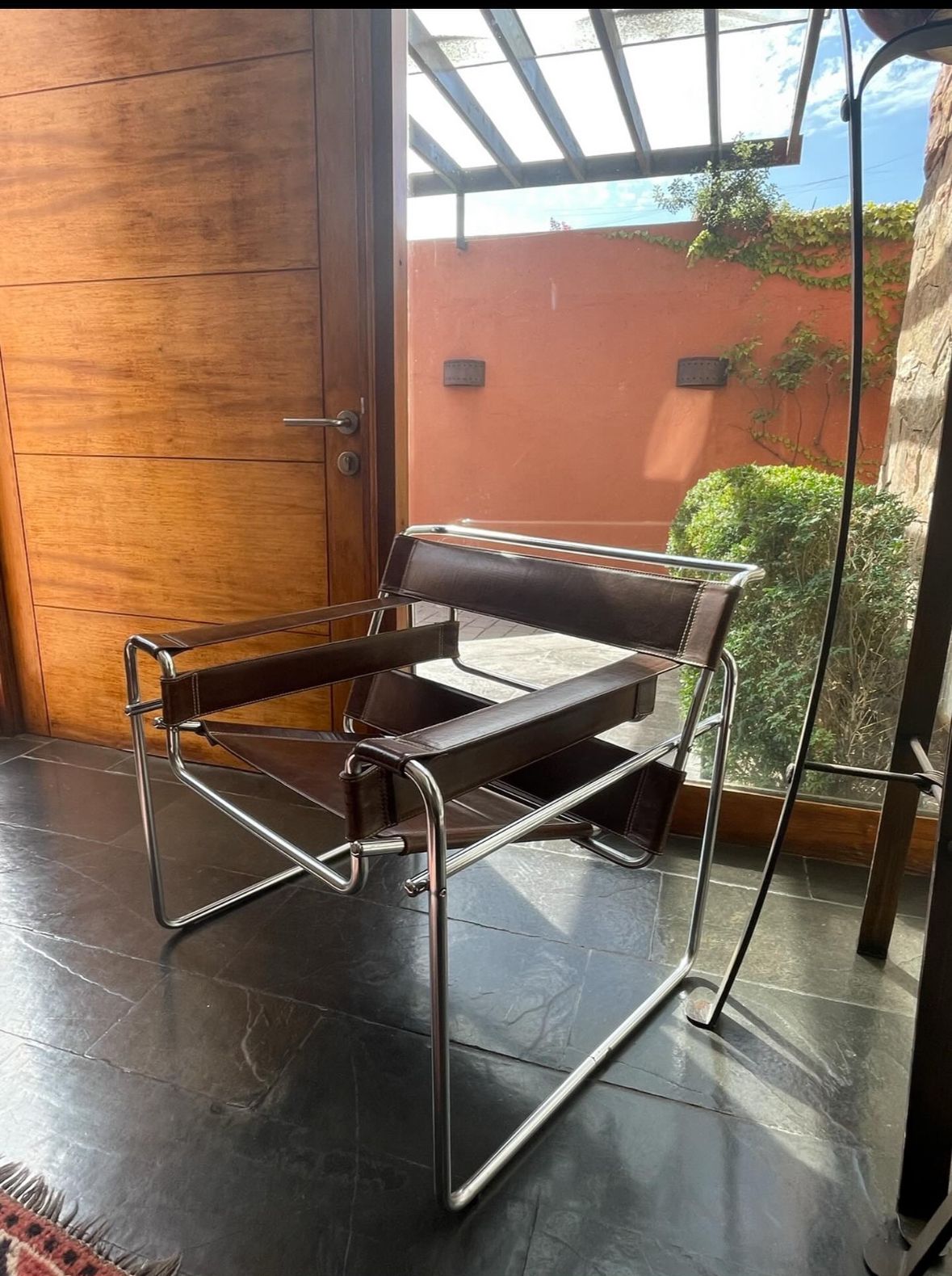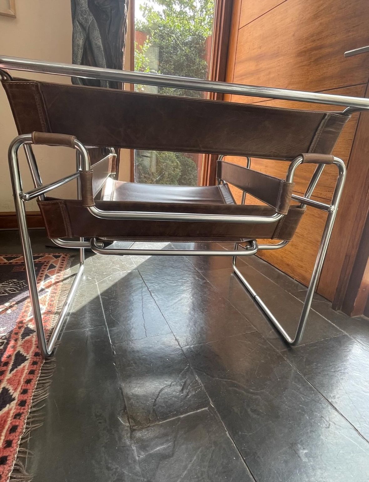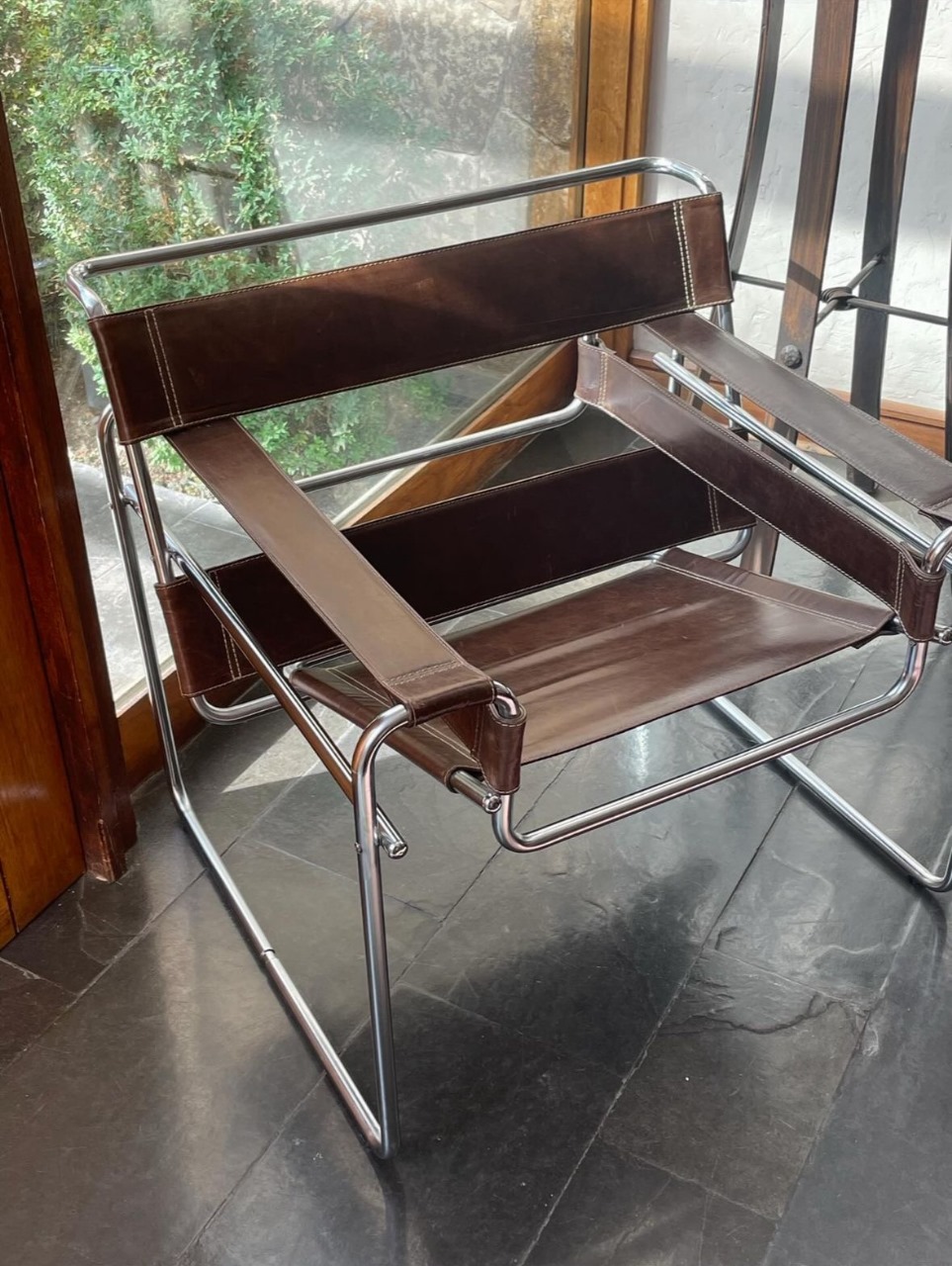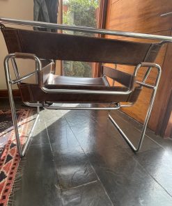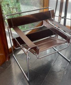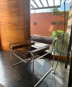 Etiquetas: muebles usados, muebles vintage, silla con medidas 63x79x71 cm, silla de cuero, silla de diseño, silla diseño moderno, silla en buen estado, silla para hogar, silla para oficina, silla vintage, Silla Wassily, Silla Wassily cuero café