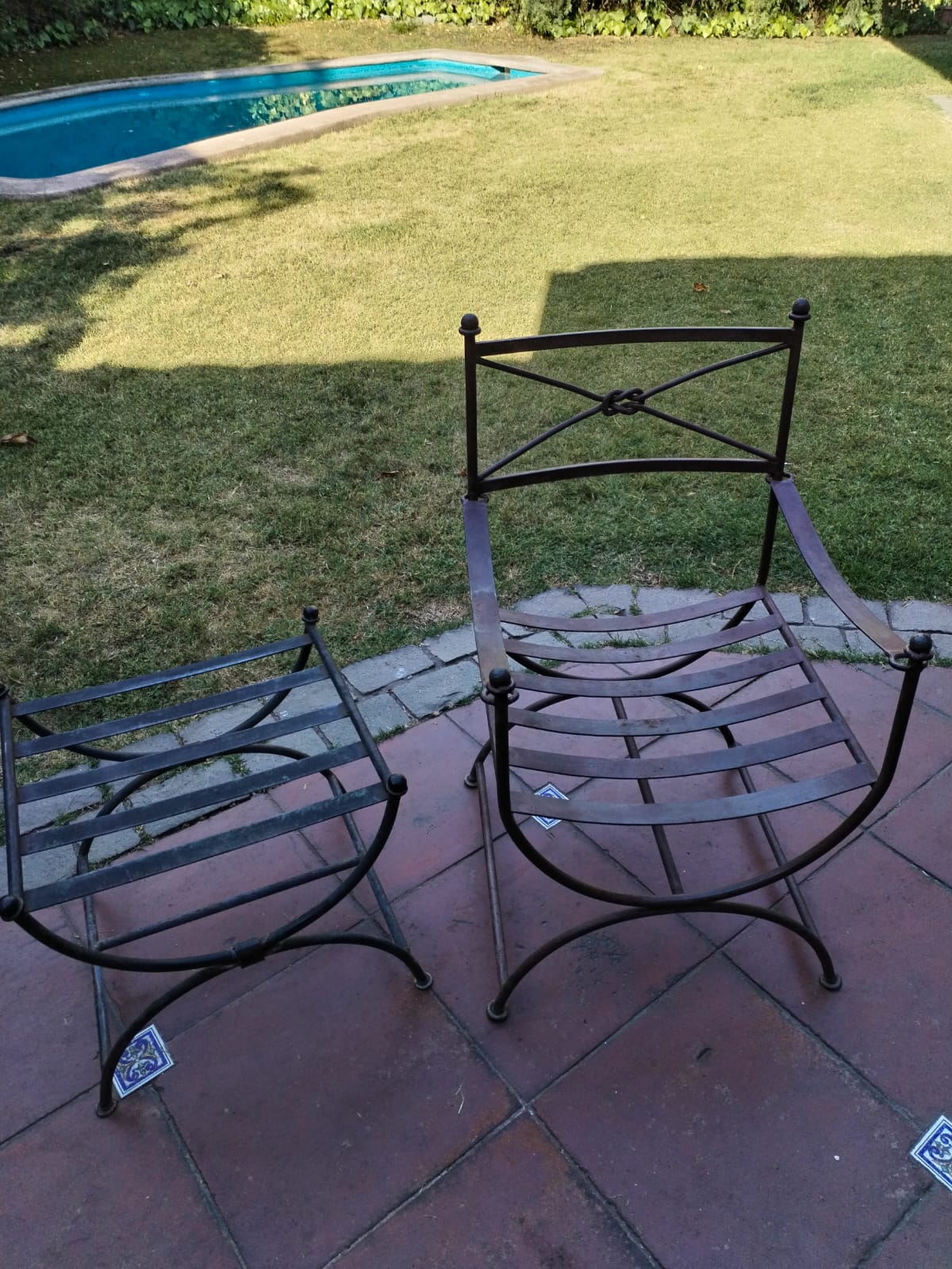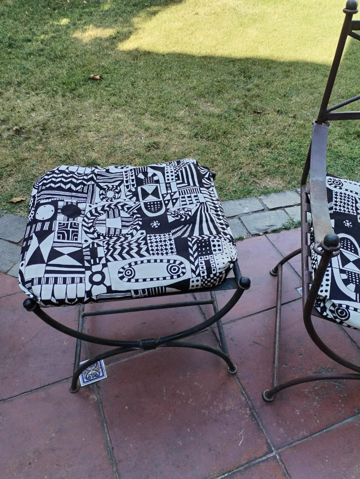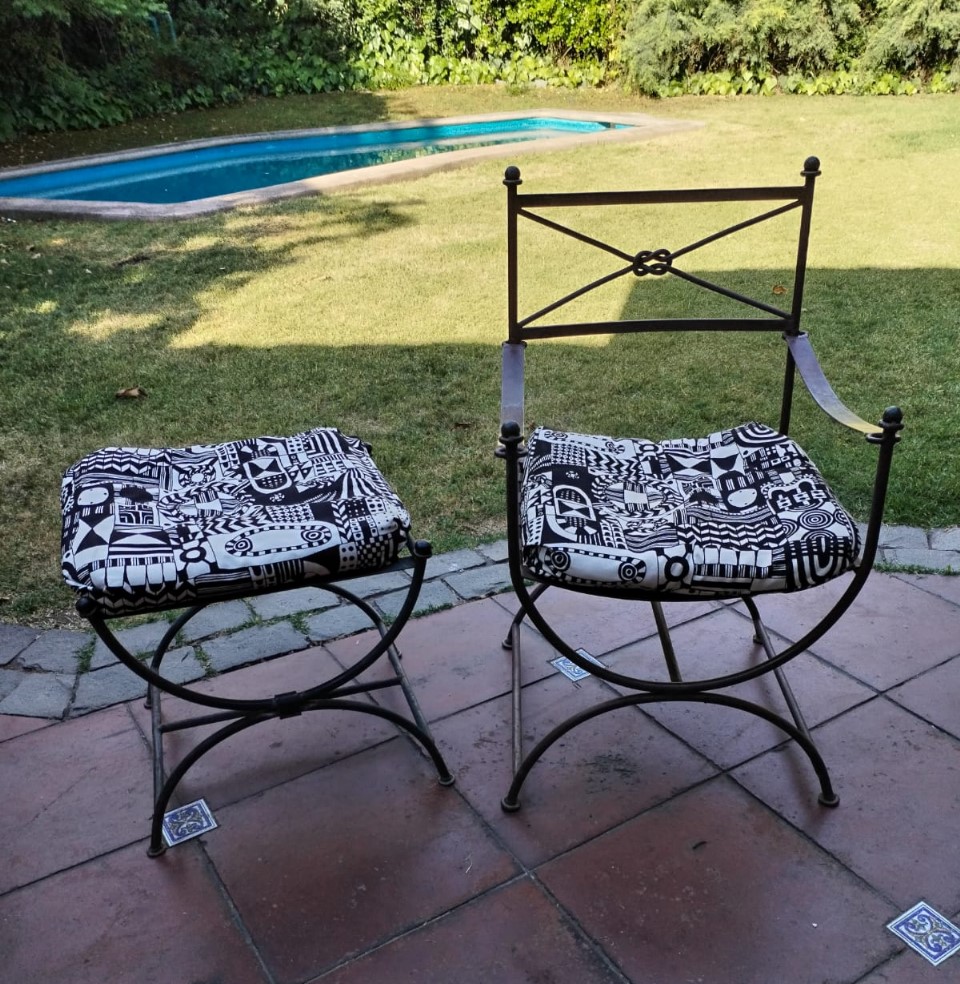Sillas metálica y banqueta etrusca