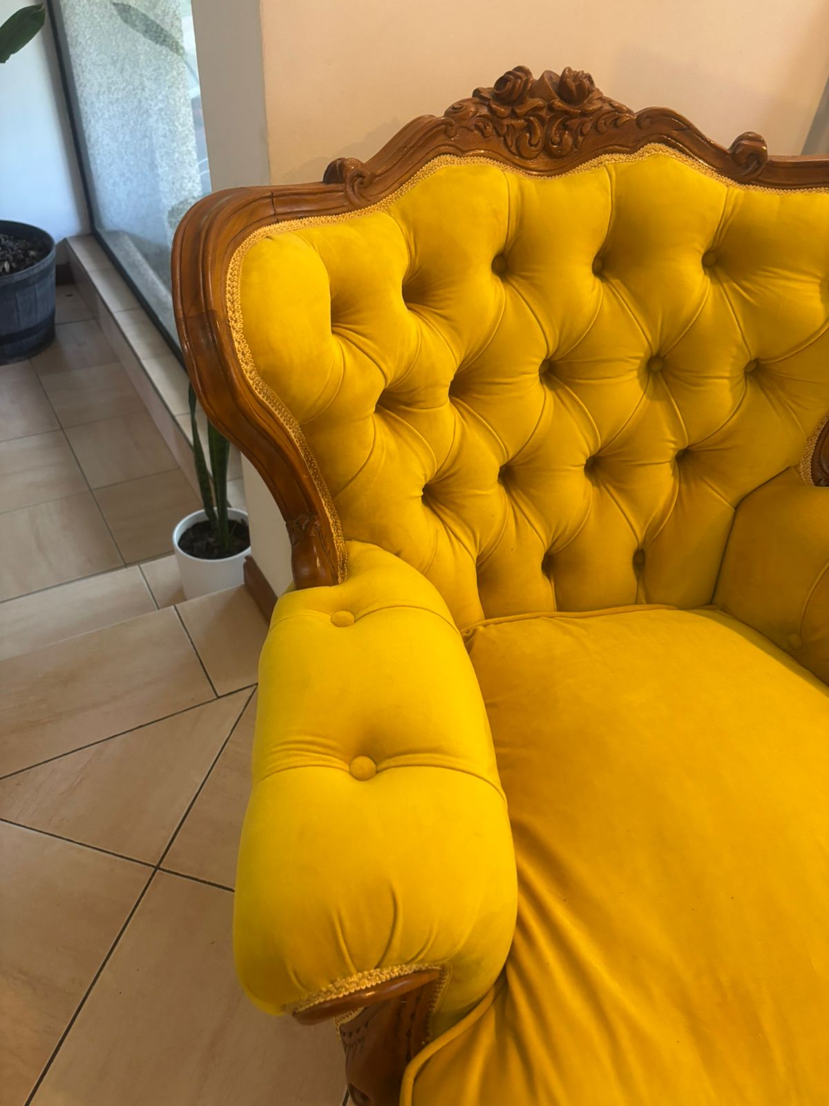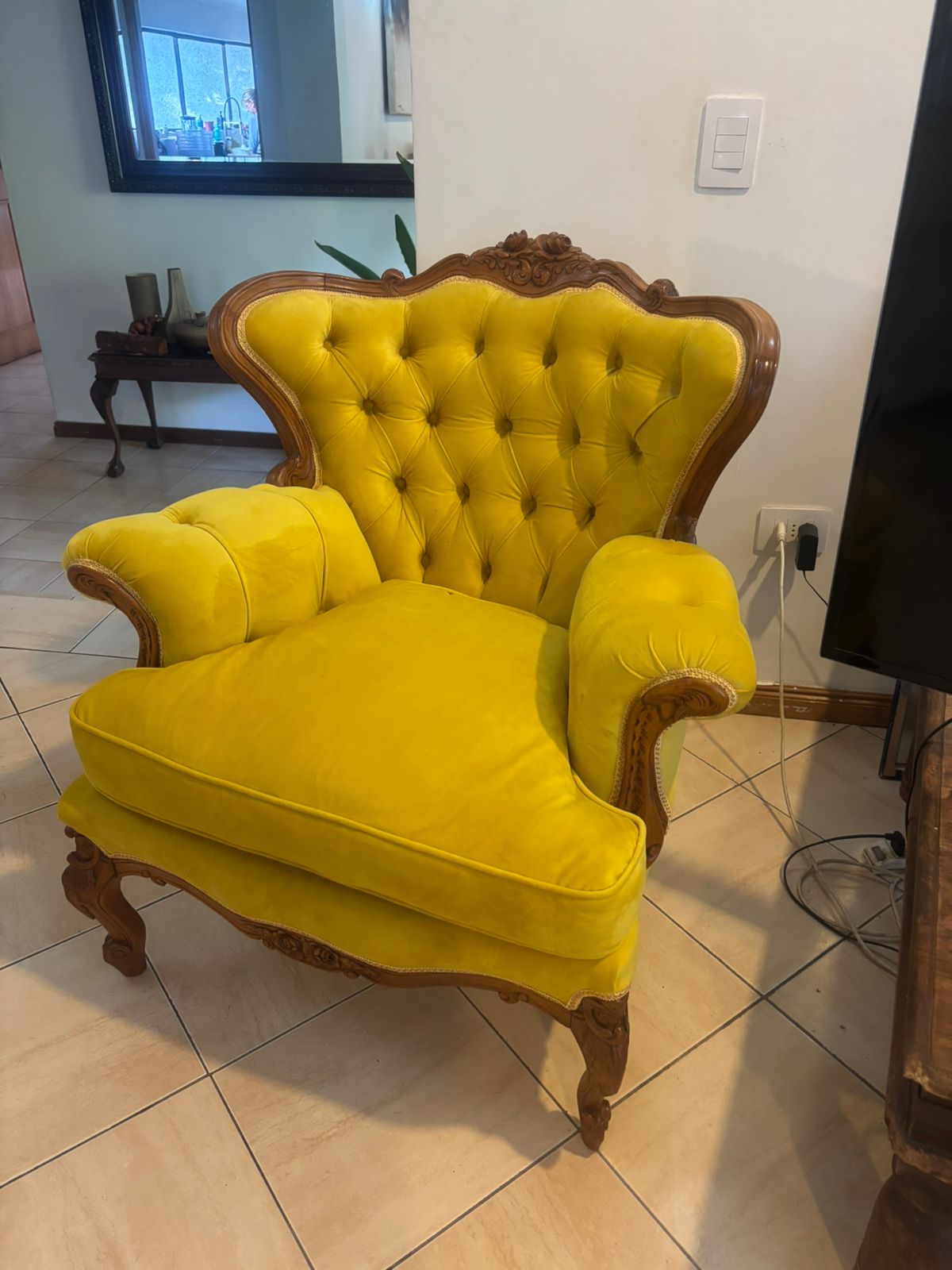 Sillón Luis XVI amarillo capitoné
