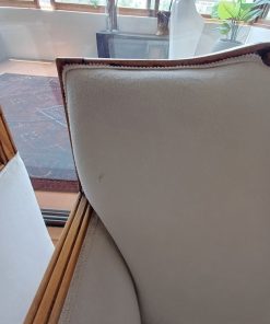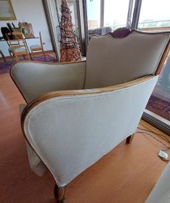 Algunas manchas, ribete decorativo suelto en uno de ellos en un costado