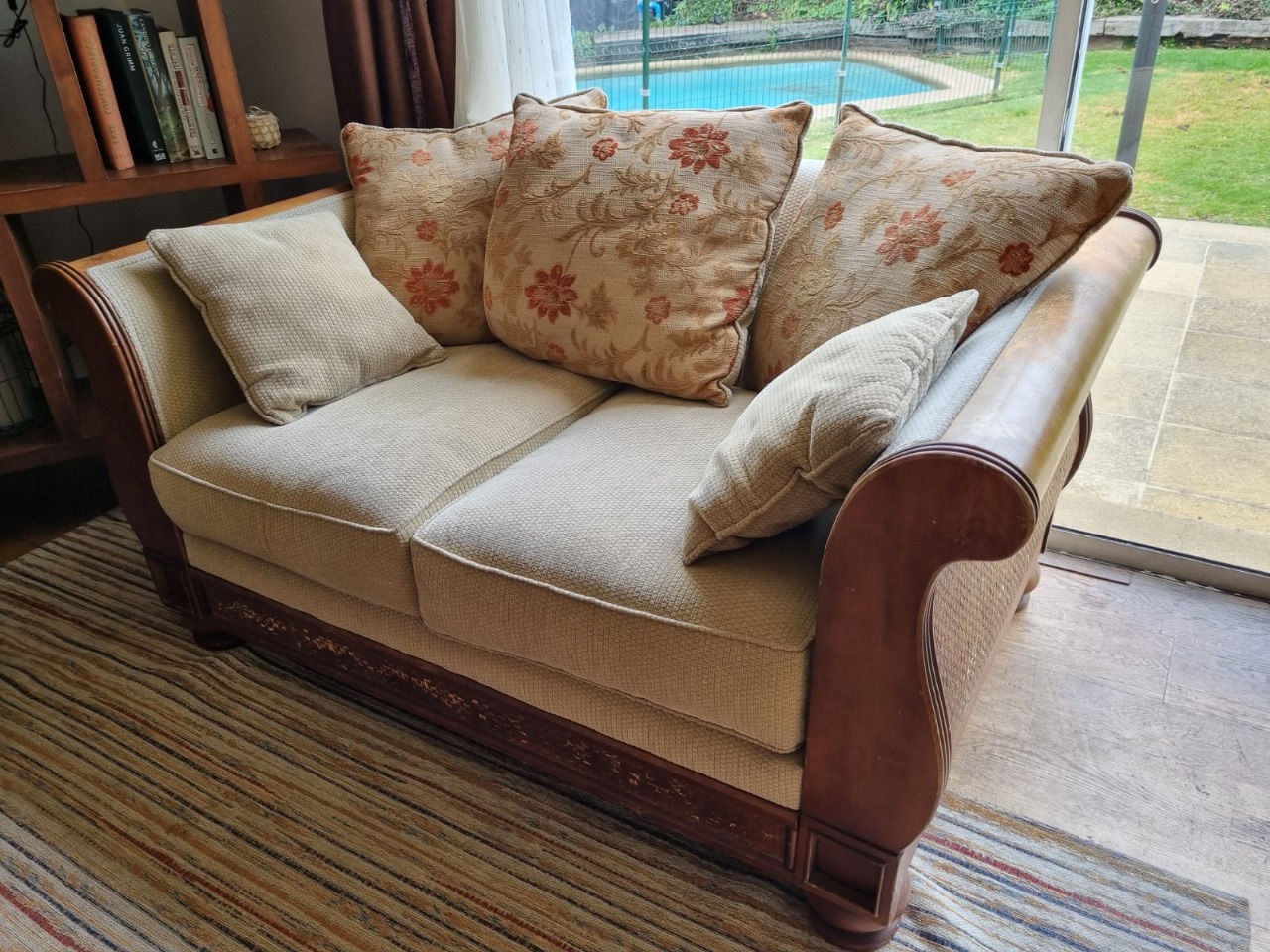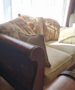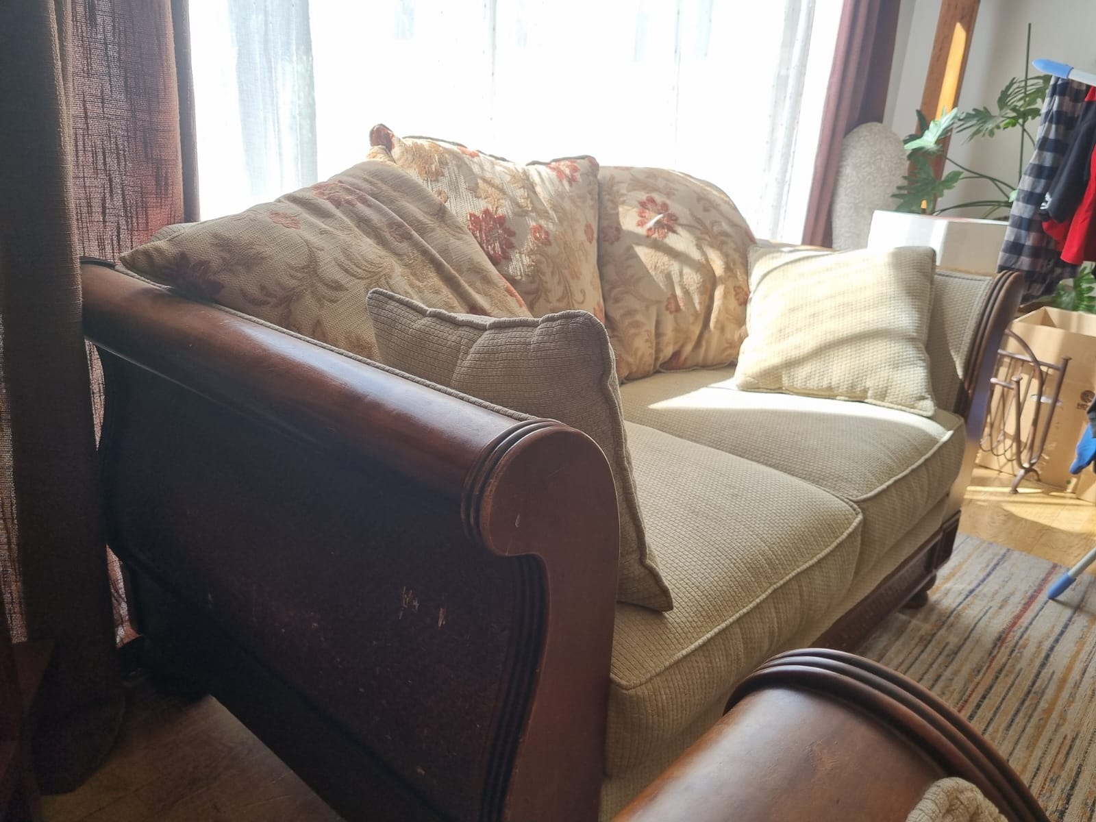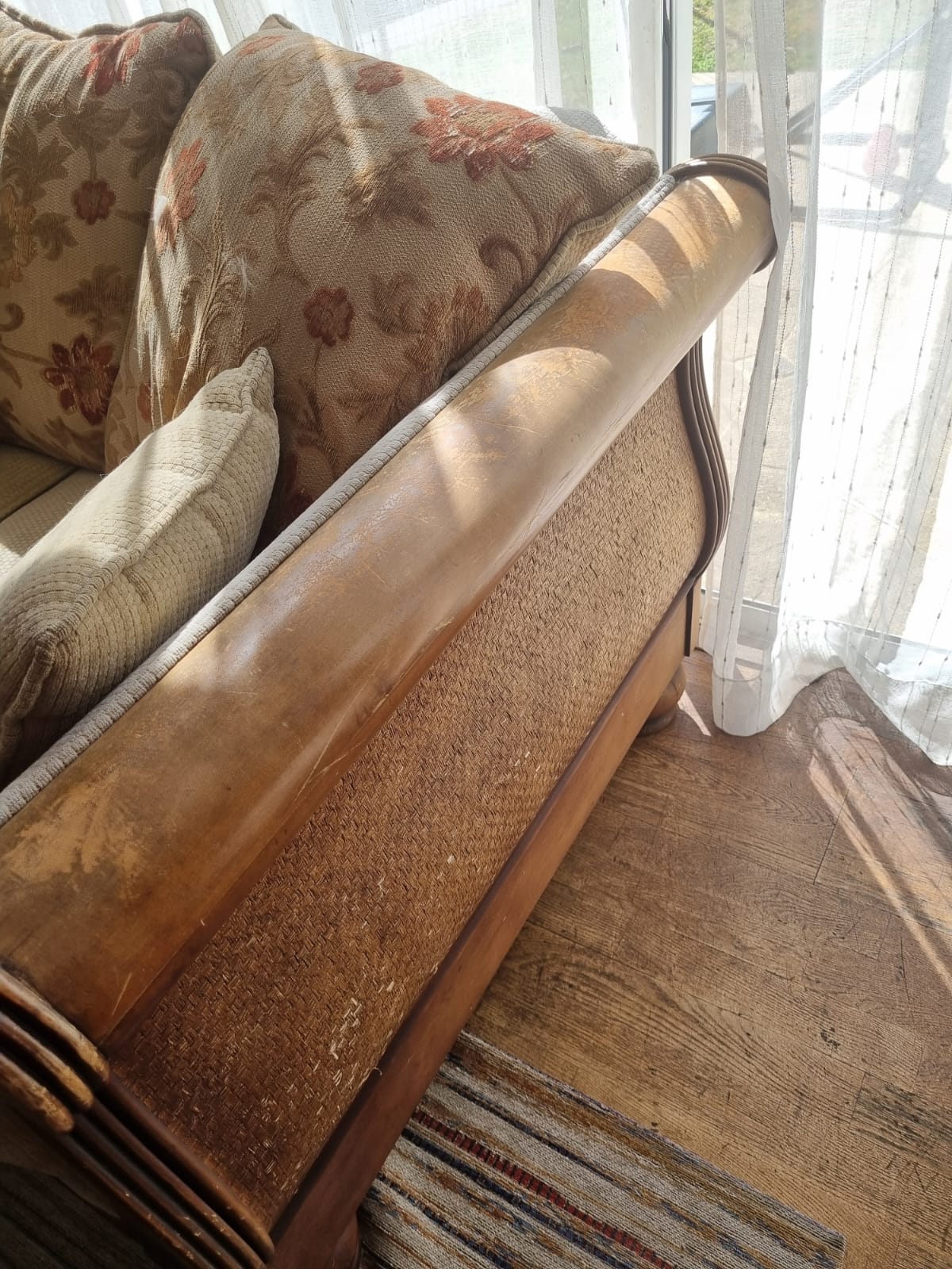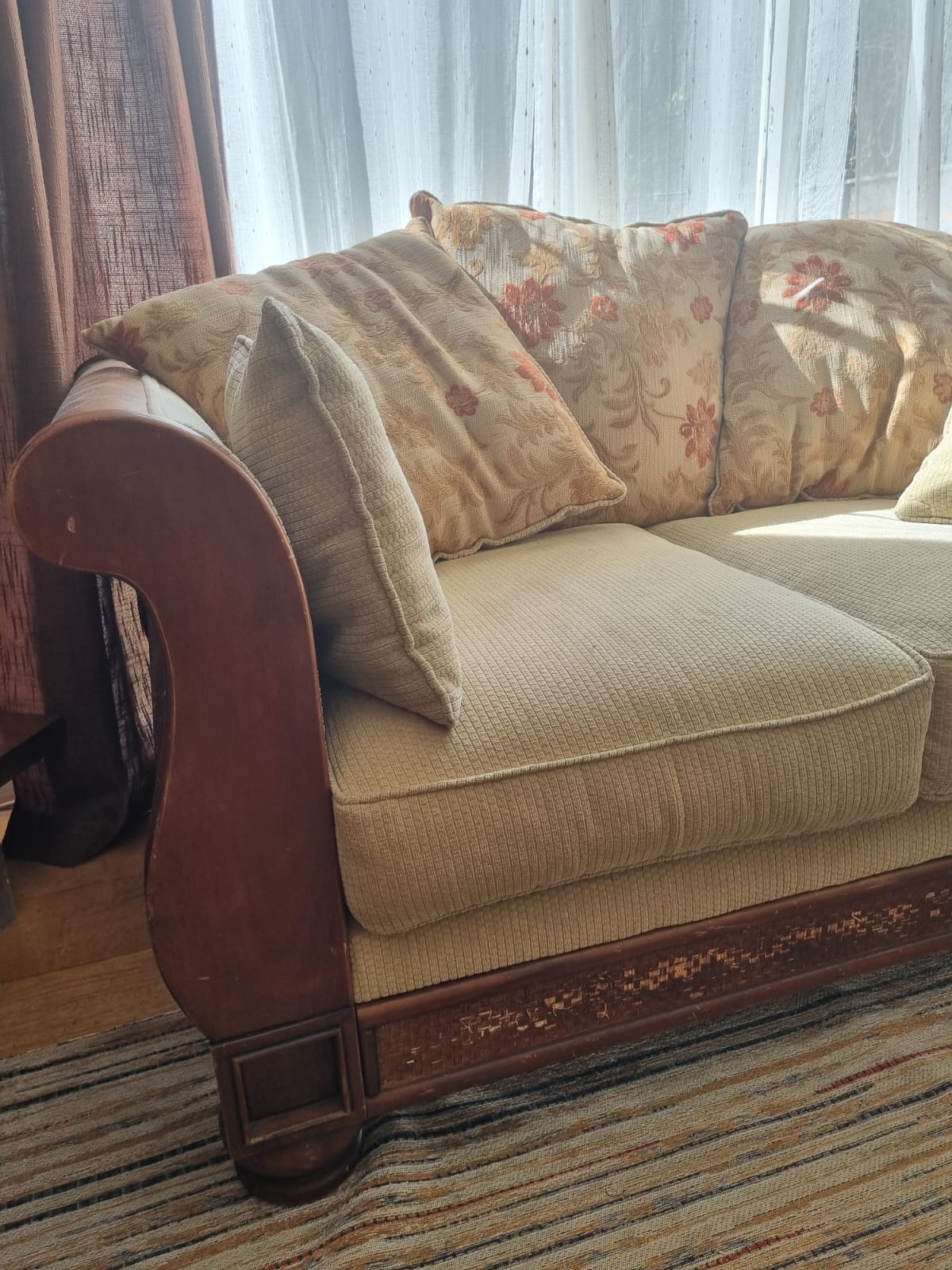 Detalles de desgaste en madera y rayas, requiere limpieza