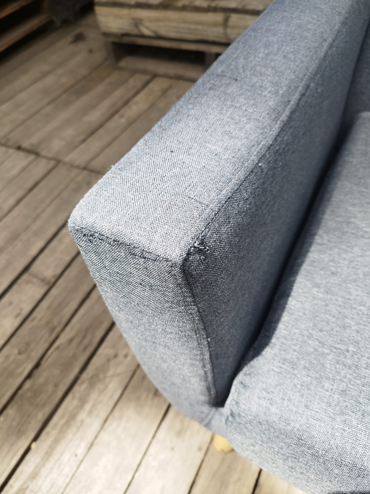 1 año de uso, lavado recientemente, una esquina se cosió.