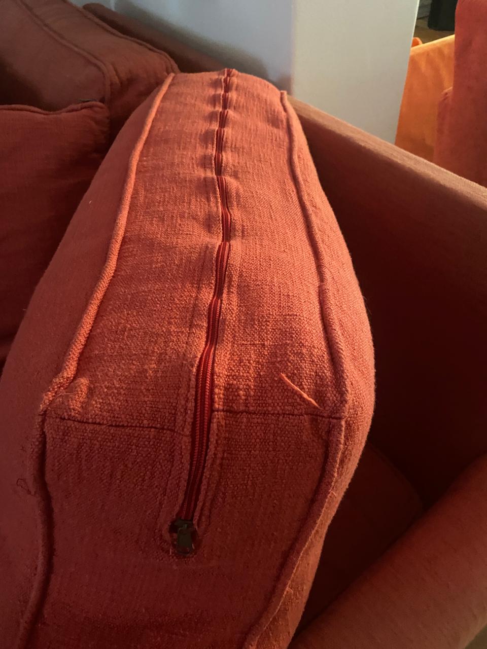 Decoloración en la parte superior, cojines con cierre