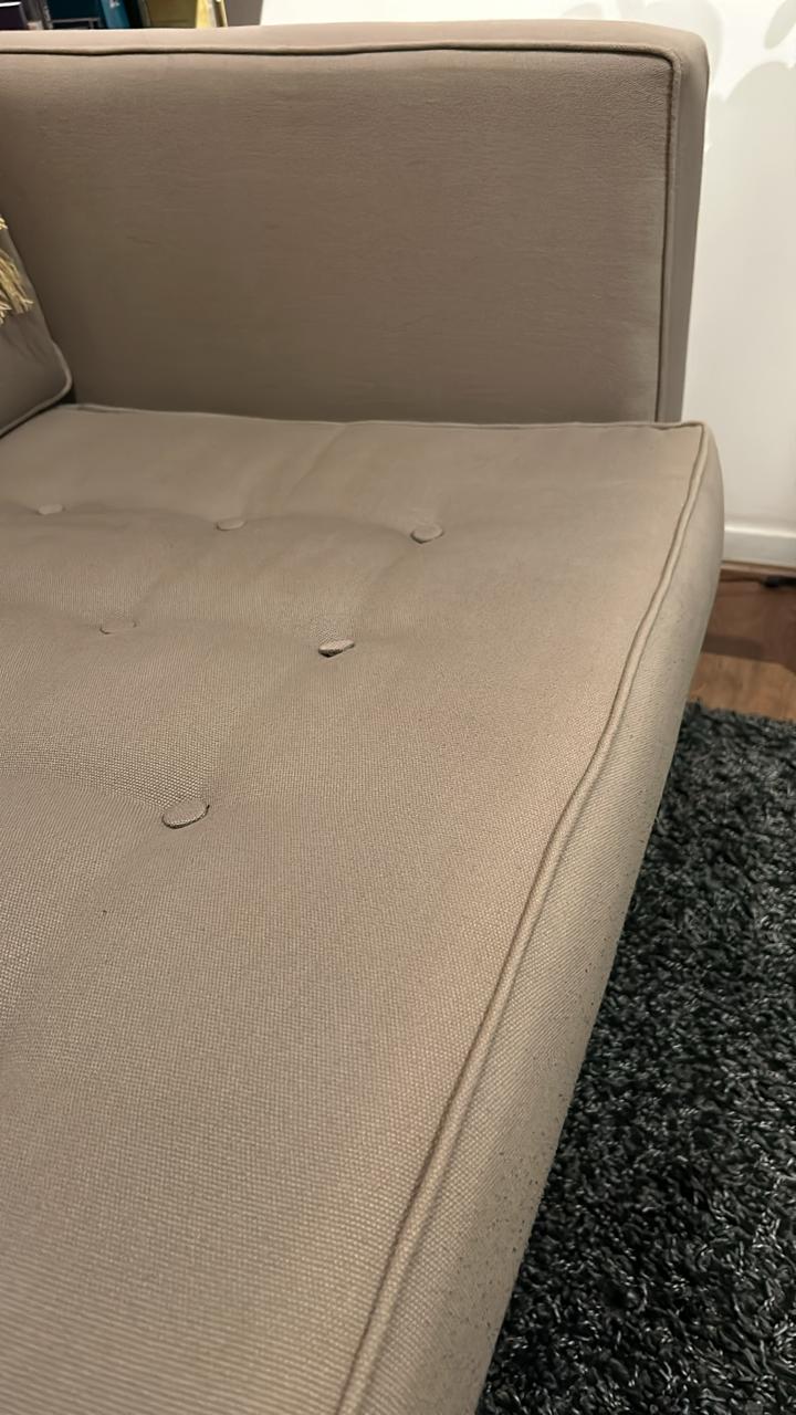 Color beige, base y patas metálicas, cojines reversibles (con y sin costura)