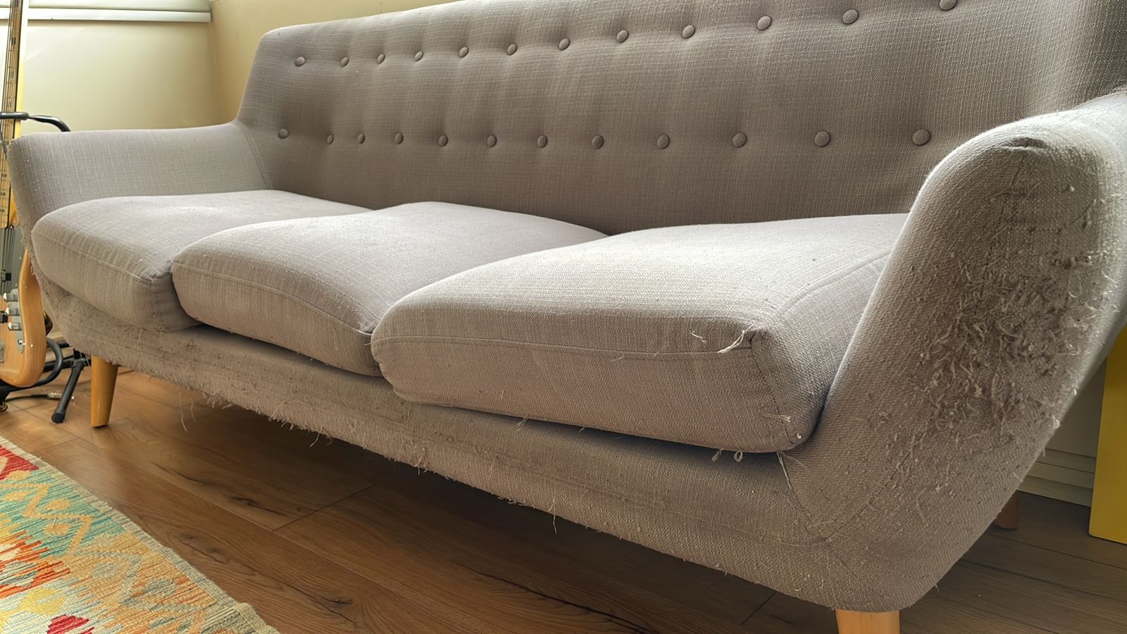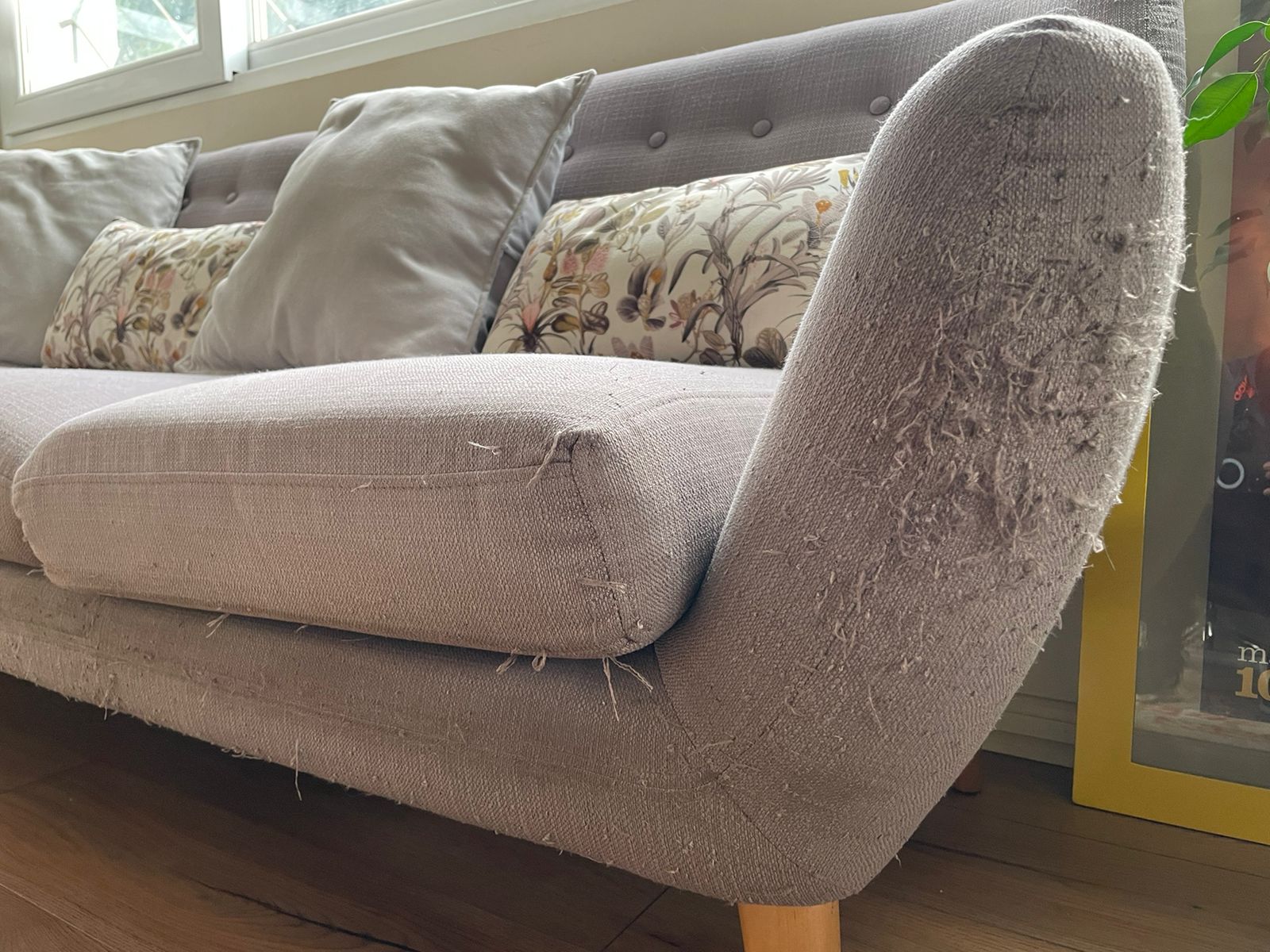 Detalles de rasguños en apoyabrazos, incluye cojines