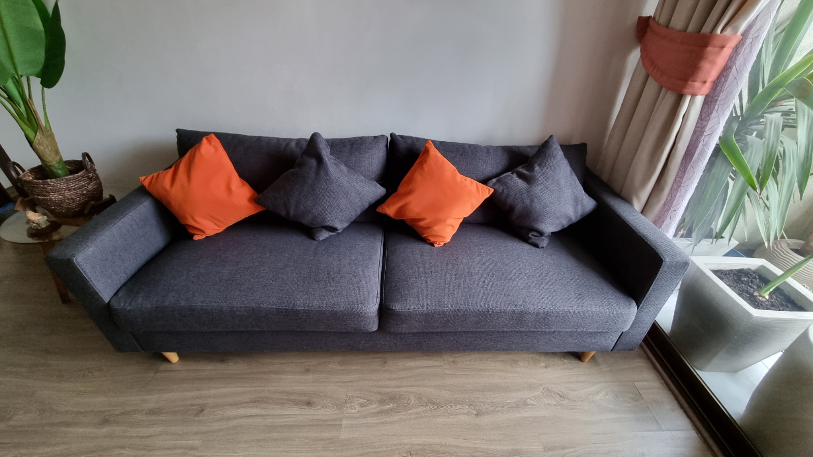 Etiquetas: 3 cuerpos, cojines, color grafito, decorativos, poliéster, sofa, Sur Diseño, tela