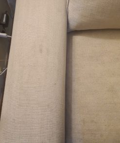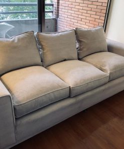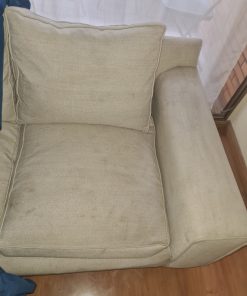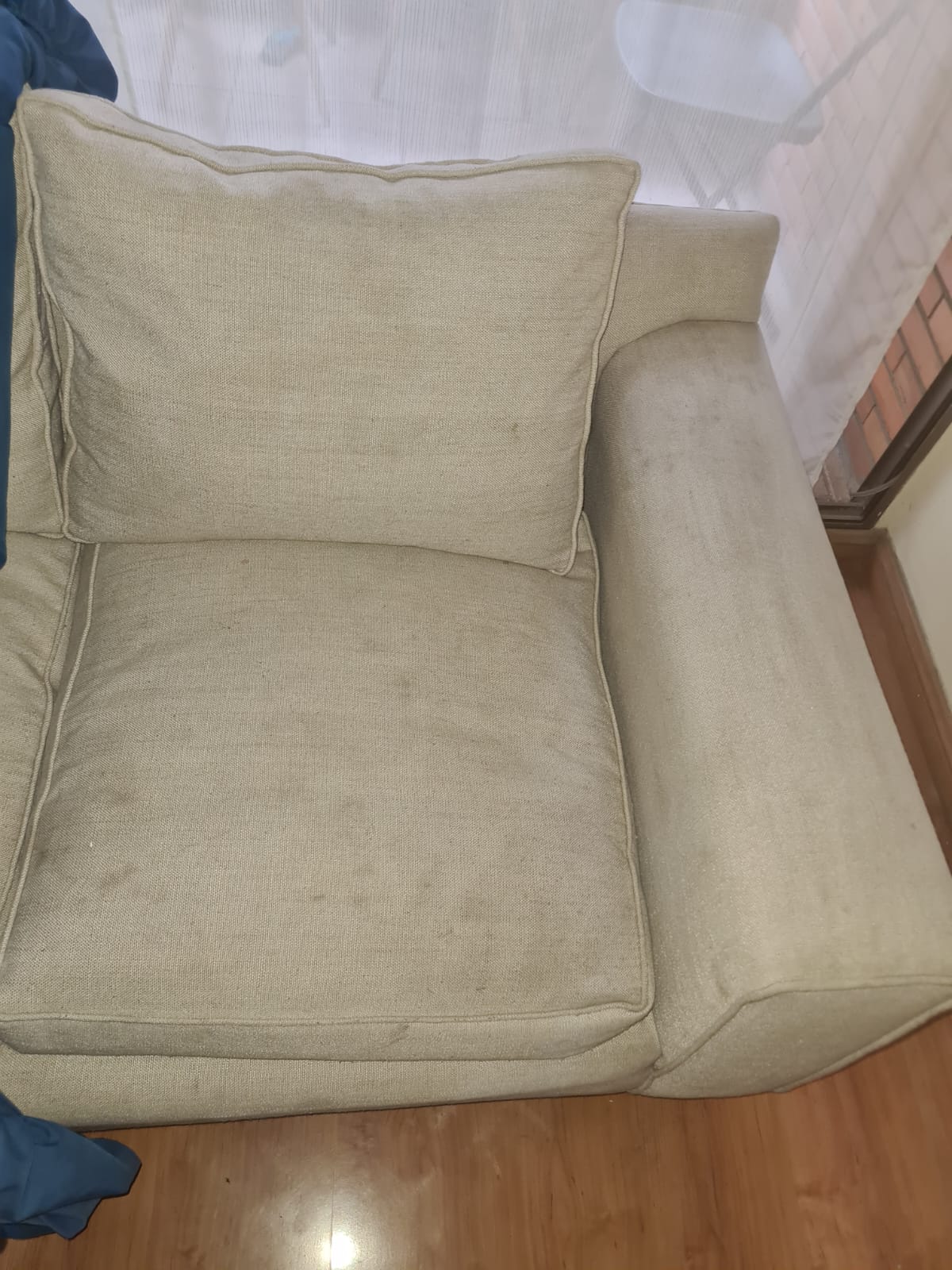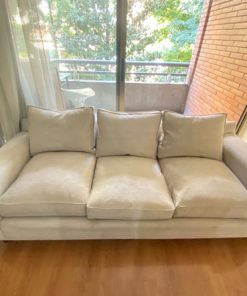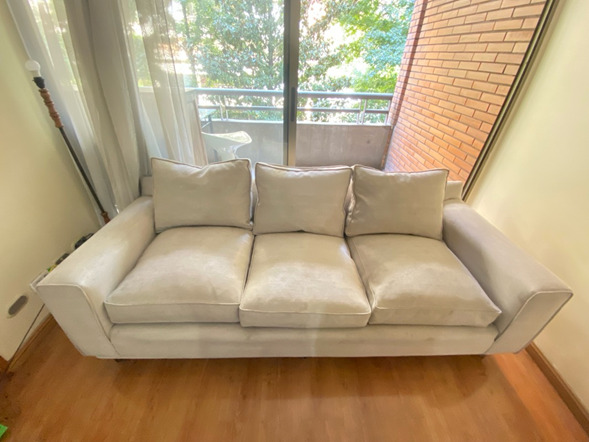 Firme, buen estado, tapiz requiere limpieza (fundas no tienen cierre). Relleno plumas.