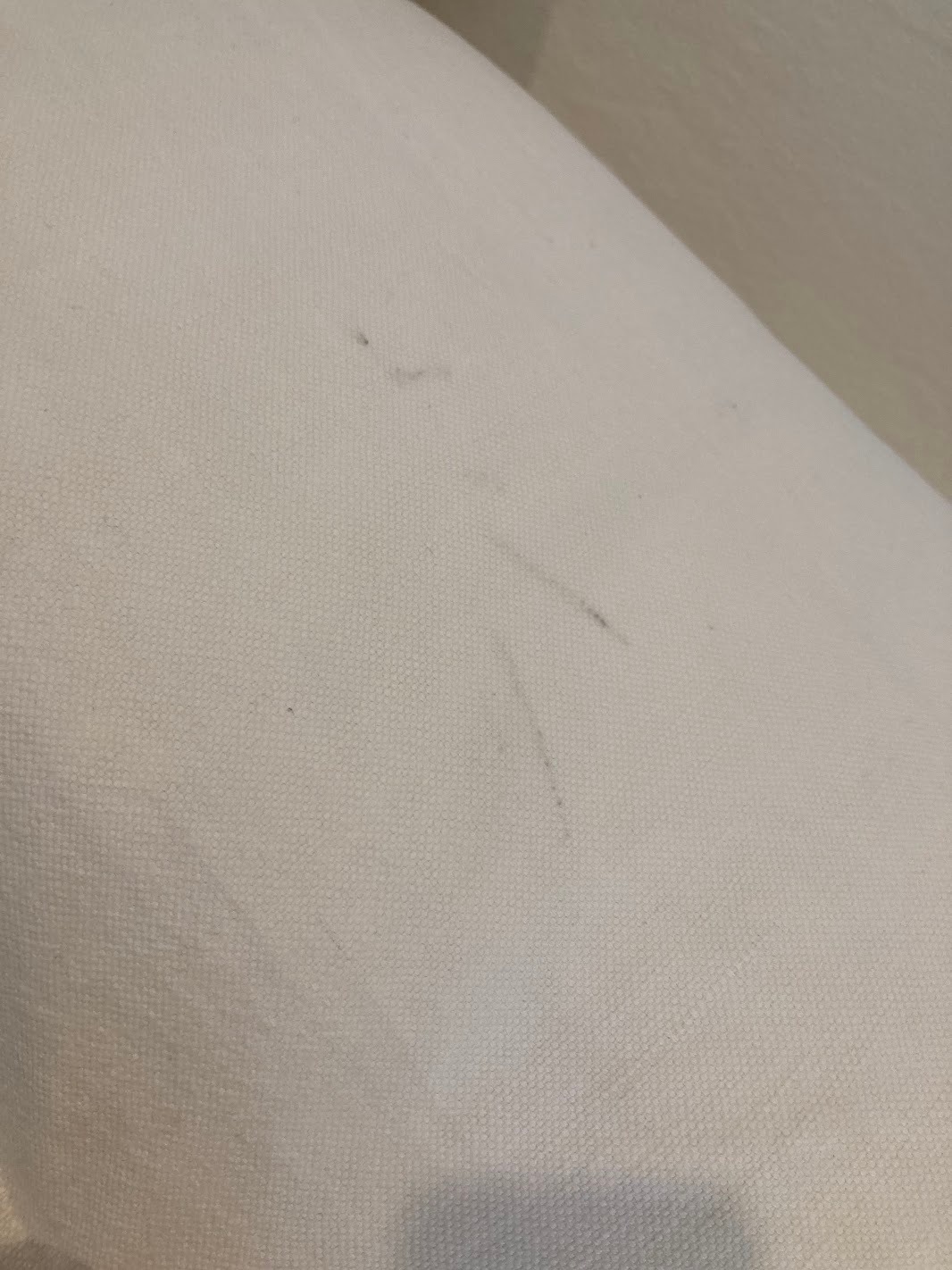 Manchas leves una visible se puede lavar y en un cojín, 1 año uso.