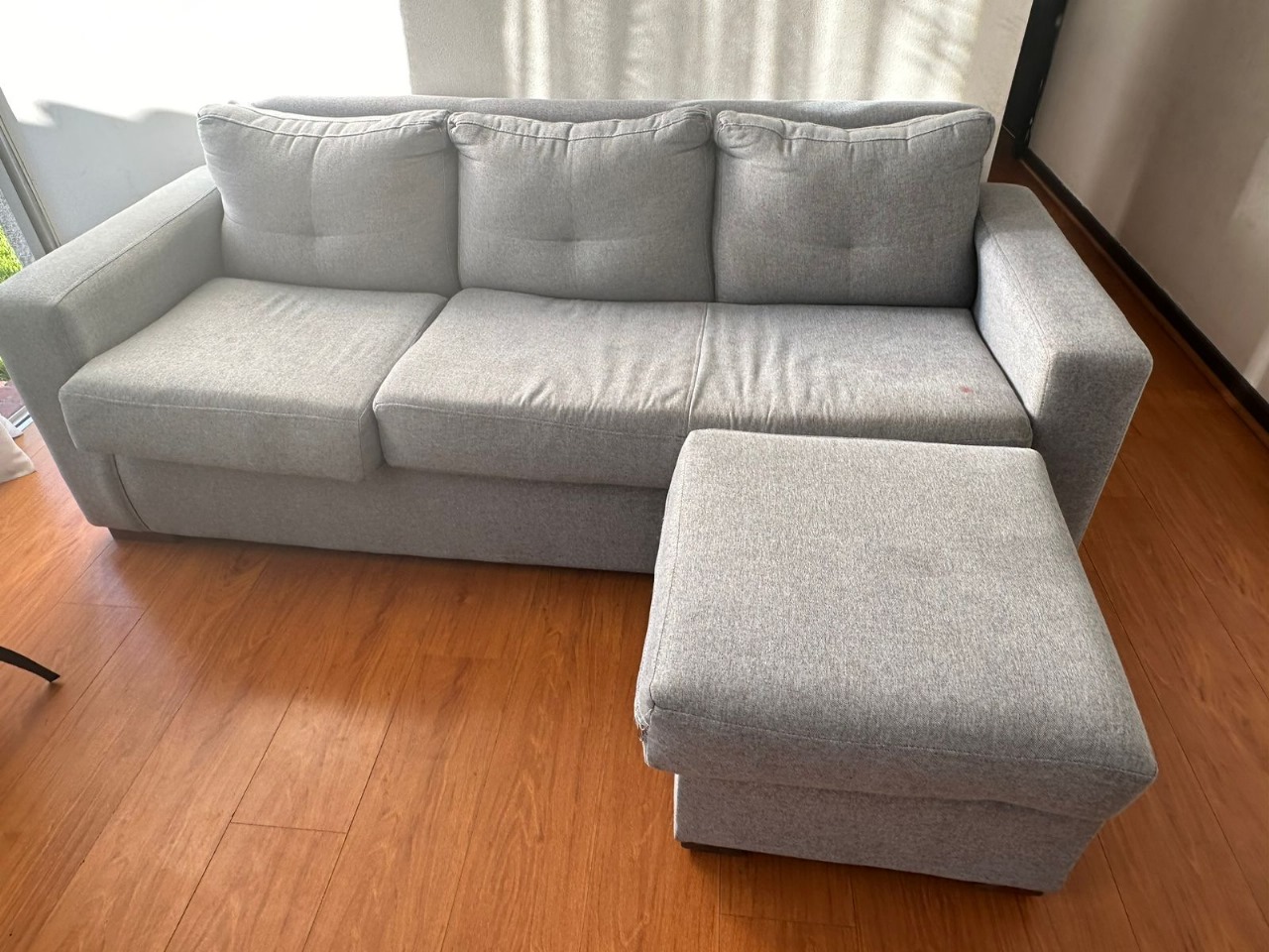 Medidas 205 x 82 x 77 cm, puff 59 x 59 x 77 cm