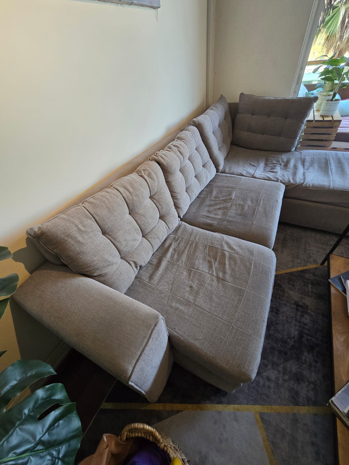 Medidas: 220×140 la L, 90 cm ancho, 40 cm alto asiento