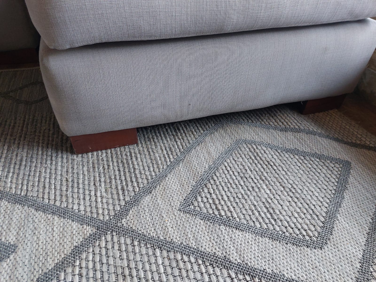 Detalle de manchas en tapiz suciedad por uso, requiere limpieza profesional