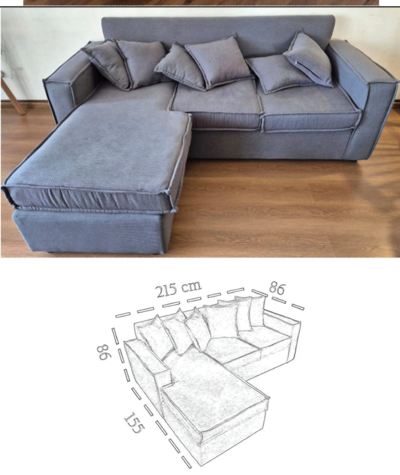 Medidas 215 x 86 x 86 cm y L: 155 cm