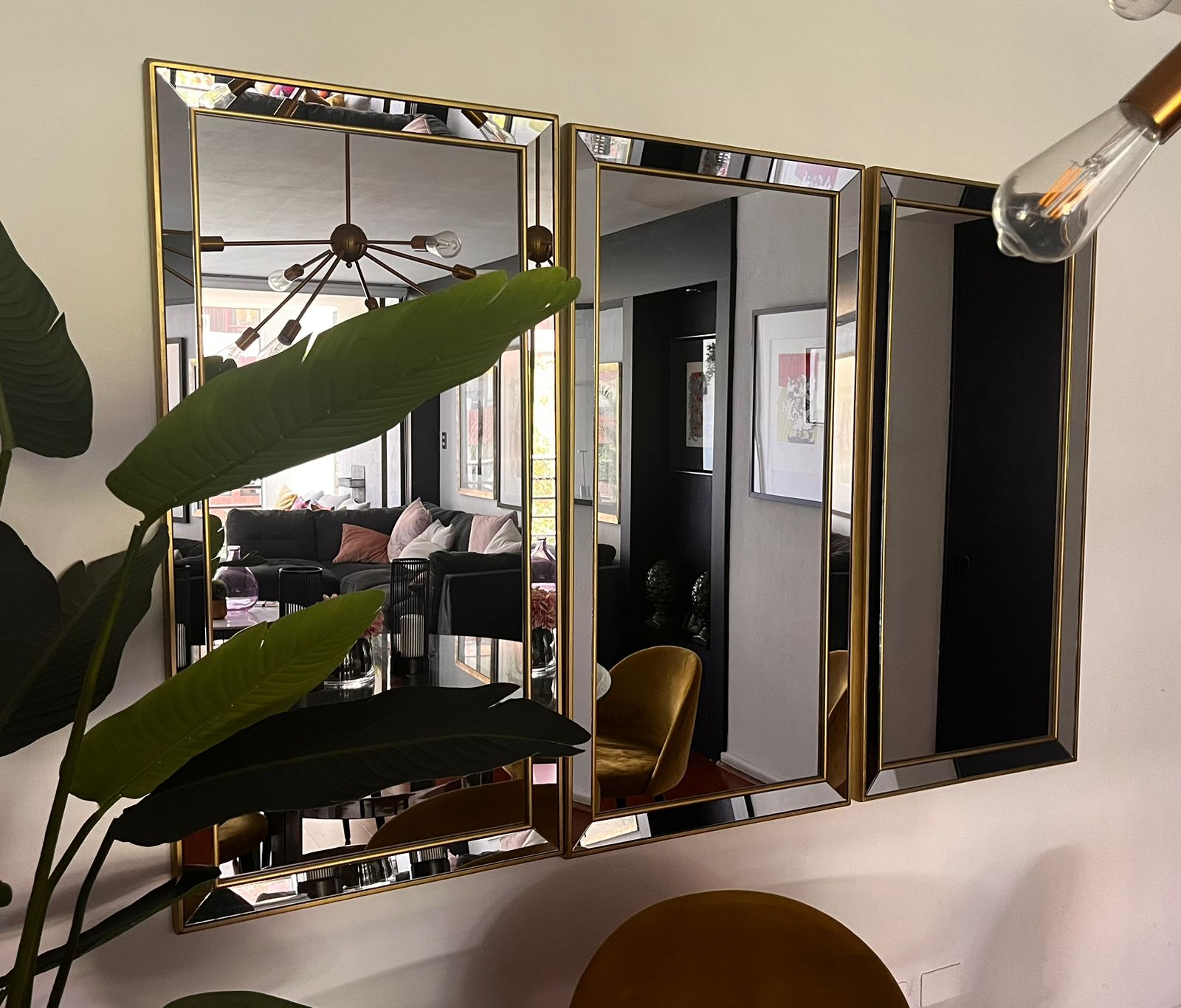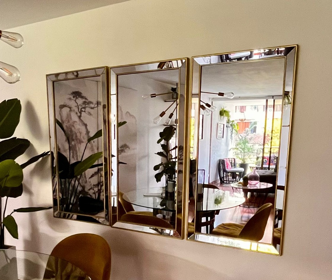 Trio de espejo biselados con marco dorado