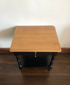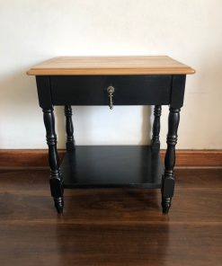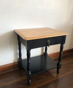 Velador negro con cajón y cubierta madera natural