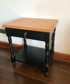 Velador negro con cajón y cubierta madera natural