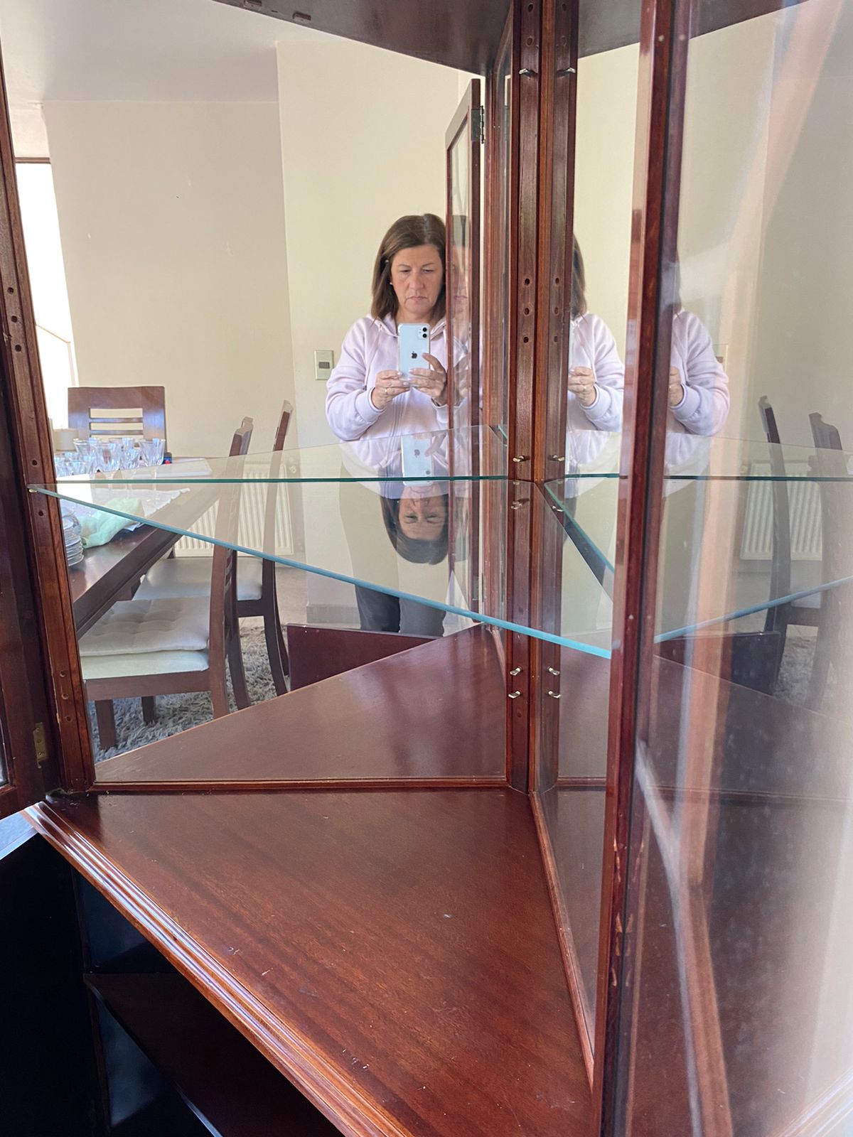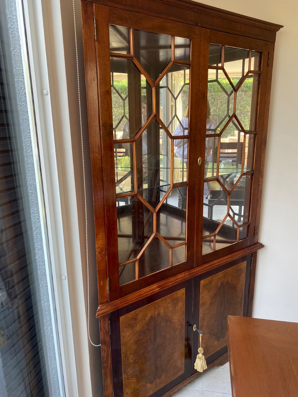Etiquetas: antigua, buen estado, esquinero, madera maciza, vitrina